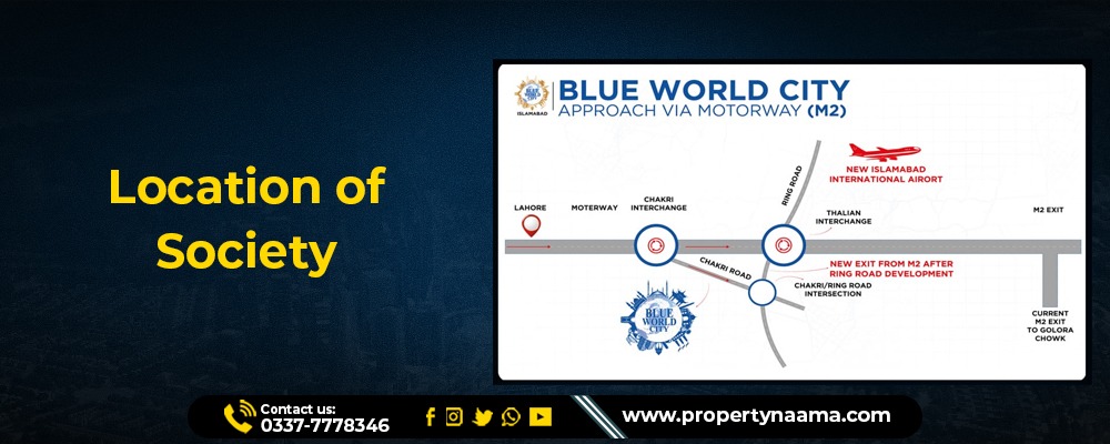 The Blue World City Islamabad is on Chakri Road, adjacent to the CPEC route. It has strategic connectivity to Islamabad, Rawalpindi, and other cities.