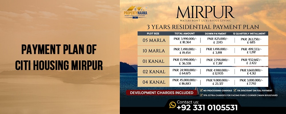 There are 02 and 04 kanal residential plots in Citi Housing Mirpur. You can buy these plots on 03 3-year easy payment plan. Here is a detailed breakdown of this payment plan: