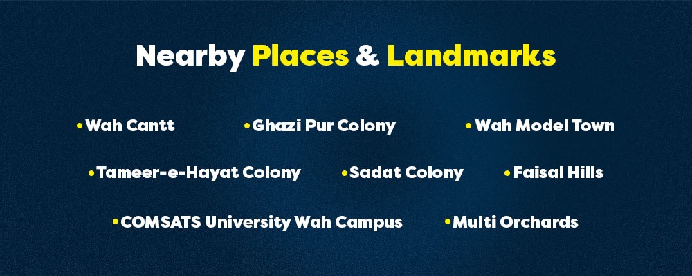- It is a 15-minute walk from Wah Cantt, a highly developed urban center with schools, markets, and hospitals.