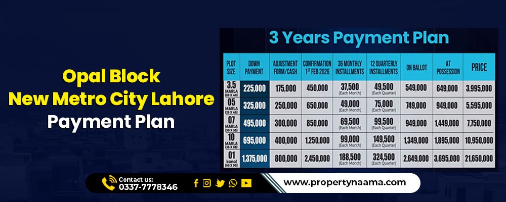 Opal Block New Metro City Lahore Payment Plan