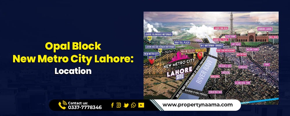 The Opal Block in New Metro City Lahore is on the Ravi Toll Plaza M-2 (Lahore-Islamabad) Motorway. This location is very close to the Babu Sabu Interchange.