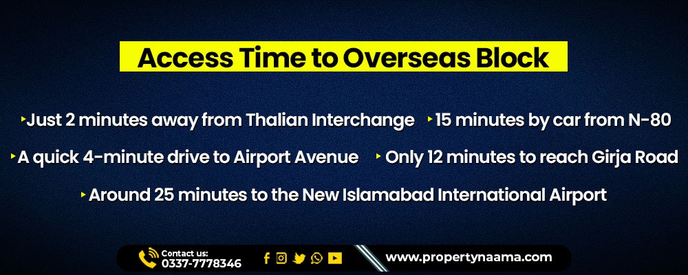 This block is near Margalla Hills, adjacent to 60,000 kanals of forest land. Therefore, the residents of Overseas Block will be able to enjoy the healthy exercise experience of the Jogging track alongside the forest. Moreover, its serene natural environment will make the mornings and nights more beautiful and enjoyable.