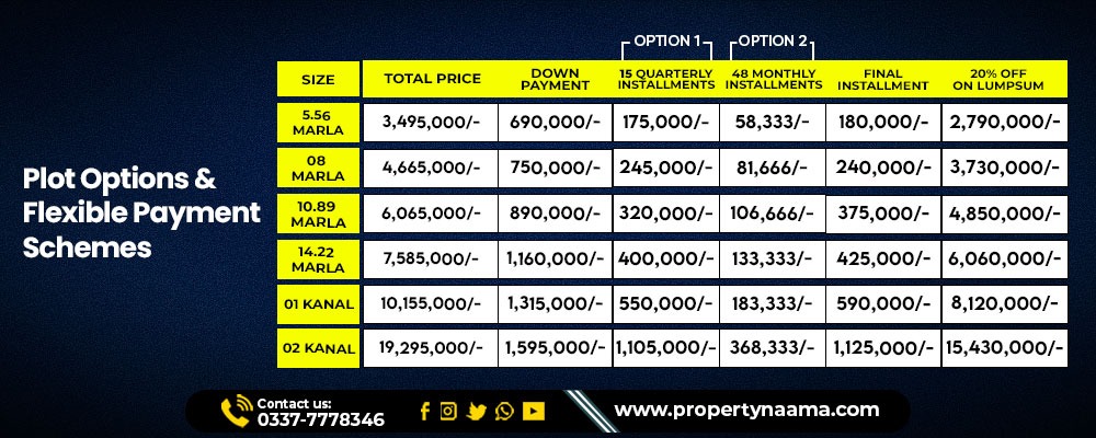 5.56 Marla: PKR 155,000 per installment for 17 installments.