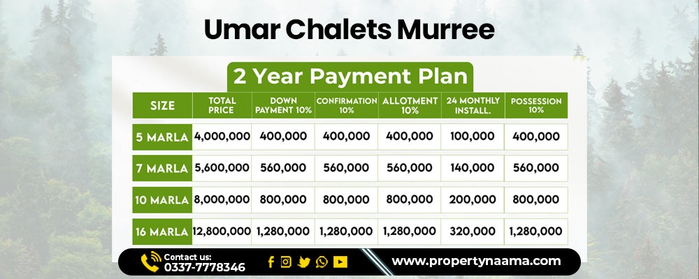 Payment Plan of Umar Chalets Murree