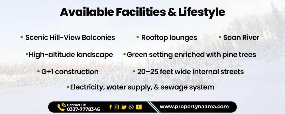 Buying the residential plots for sale in Murree means you are investing in a completely new lifestyle. You will get the following facilities and lifestyle essentials here: